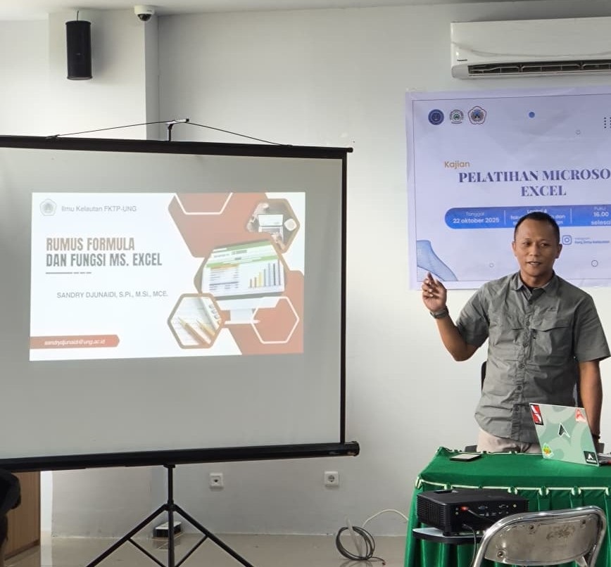Gorontalo, 22 Oktober 2025 — Himpunan Mahasiswa Jurusan Ilmu Kelautan, Fakultas Kelautan dan Teknologi Perikanan, Universitas Negeri Gorontalo, sukses menyelenggarakan kegiatan Pelatihan Microsoft Excel yang ditujukan untuk meningkatkan kemampuan mahasiswa dalam pengolahan dan analisis data kelautan.